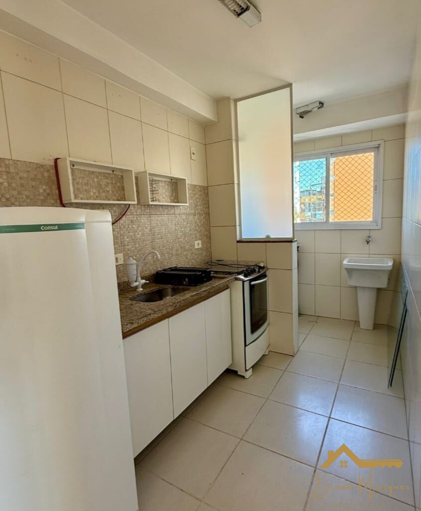 O apartamento conta com os seguintes cômodos: 3 Dormitórios; Sala de estar; Cozinha; Área de serviço; Banheiro e Vaga de garagem.