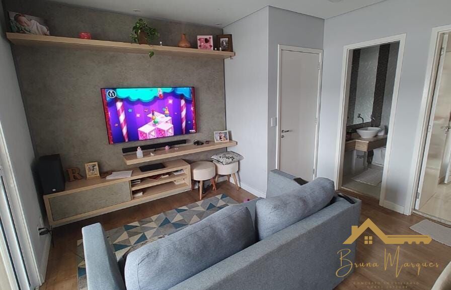 O apartamento conta com os seguintes cômodos: 3 Dormitórios, sendo uma suíte; Sala de estar; Cozinha; Área de serviço; Varanda; Banheiro e 2 Vagas de garagem.